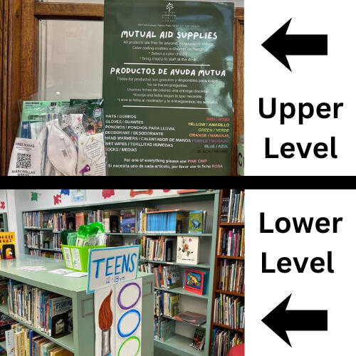 500 First AvenueThere is a basket located in the non fiction section of Junior Fiction on the lower level. If entering through the Grand Ave entrance, go down several steps and it will be immediately on your right. If entering through the 1st ave entrance, there is a long flight of stairs into the Adult library, go past the reference desk and then a flight of stairs down to the Junior room. There is also a folder in the main entrance hallway, on your right as you enter, next to the large green mutual aid poster. The library entrances are not wheelchair accessible.